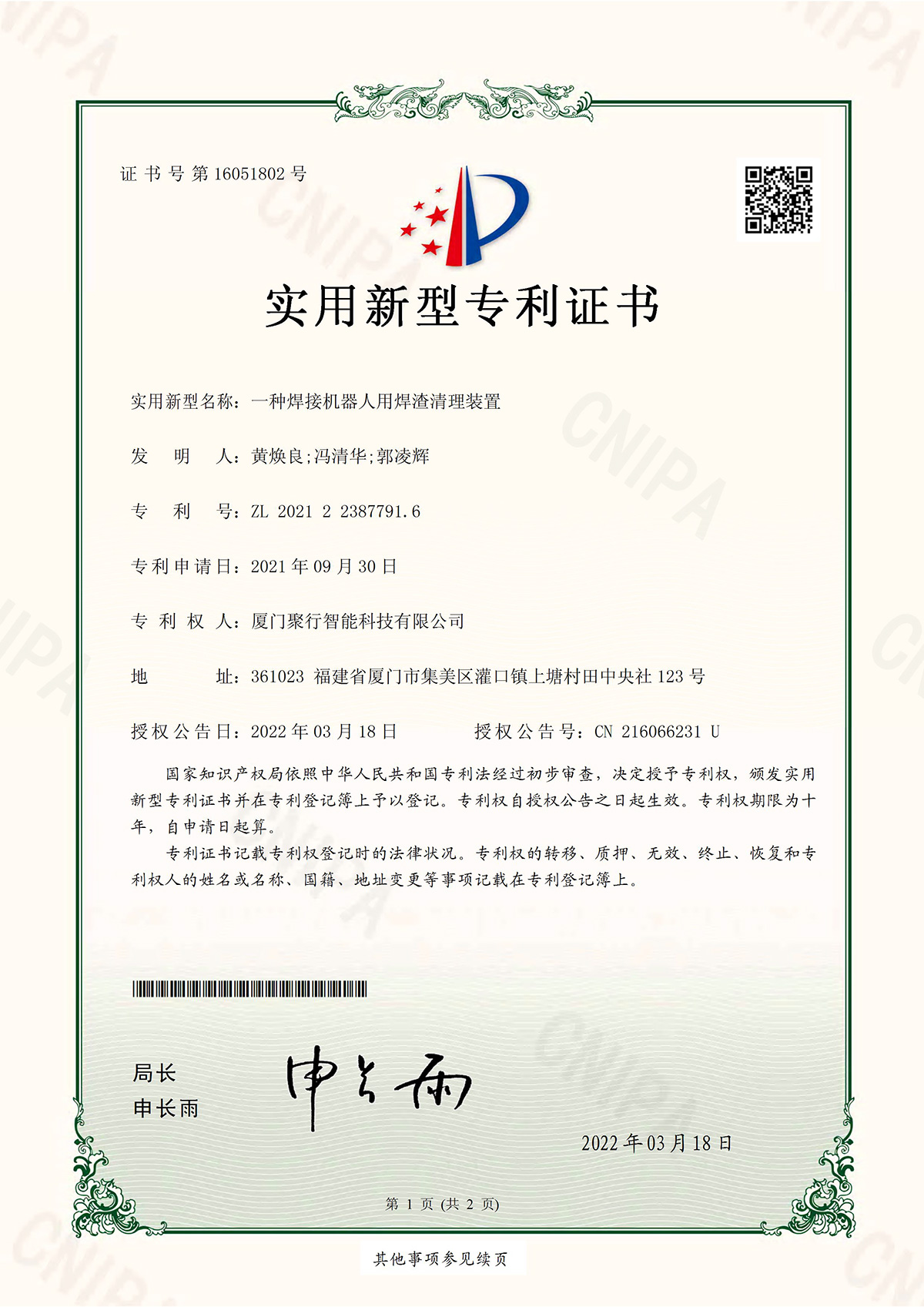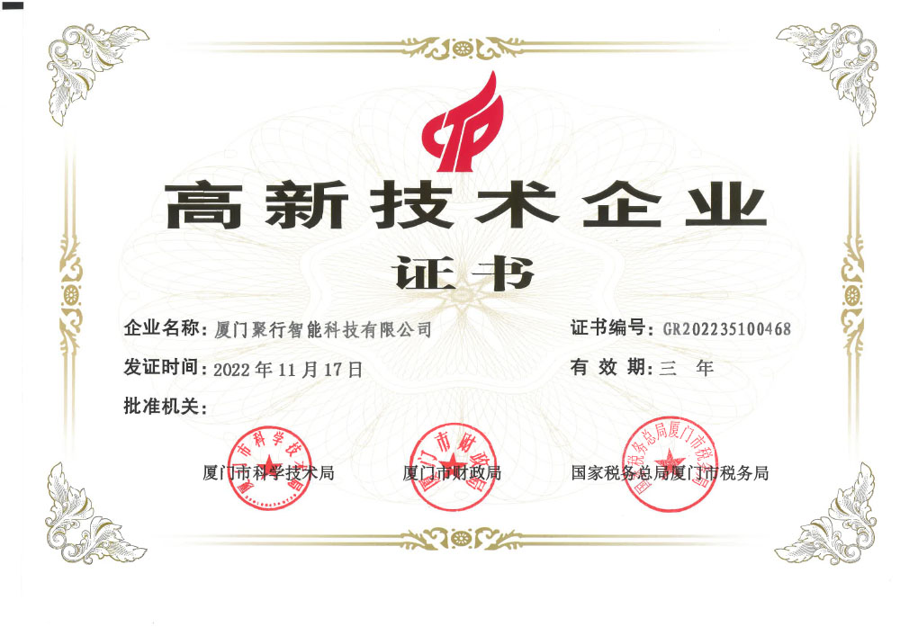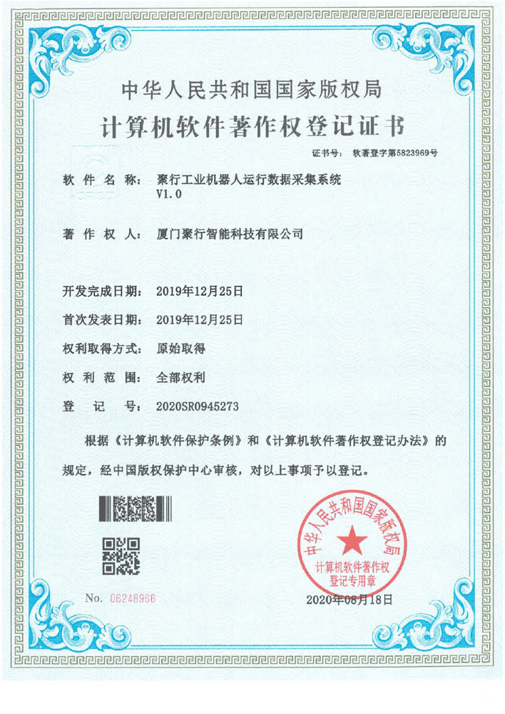 公司先后榮獲《廈門(mén)市市級(jí)高新技術(shù)企業(yè)》、《國(guó)家級(jí)高新技術(shù)企業(yè)》,公司成立以來(lái),獲得《一種多自由度焊接機(jī)器人》、《一種自動(dòng)化生產(chǎn)線(xiàn)用搬運(yùn)裝置》、《一種自動(dòng)化生產(chǎn)線(xiàn)用轉(zhuǎn)運(yùn)平臺(tái)》、《一種具備高度調(diào)節(jié)裝置的焊接機(jī)器人》、《聚行噴漆工業(yè)機(jī)器人控制系統(tǒng)》、《聚行噴漆工業(yè)機(jī)器人運(yùn)行數(shù)據(jù)采集系統(tǒng)》等共計(jì)幾十項(xiàng)發(fā)明專(zhuān)利,軟件著作權(quán)等。